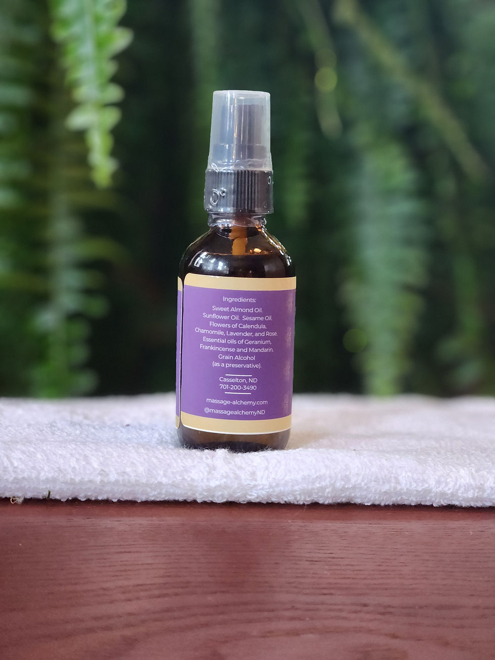 Each session includes massage oils personally hand crafted from non-GMO, organic botanicals grown right here on our farm, and infused in a skin-loving, sweet almond oil base. These custom made oils provide an additional layer of therapy that has been shown to help relax tension and aid in pain management. These products are also available for purchase in our shop for continued benefits after session.